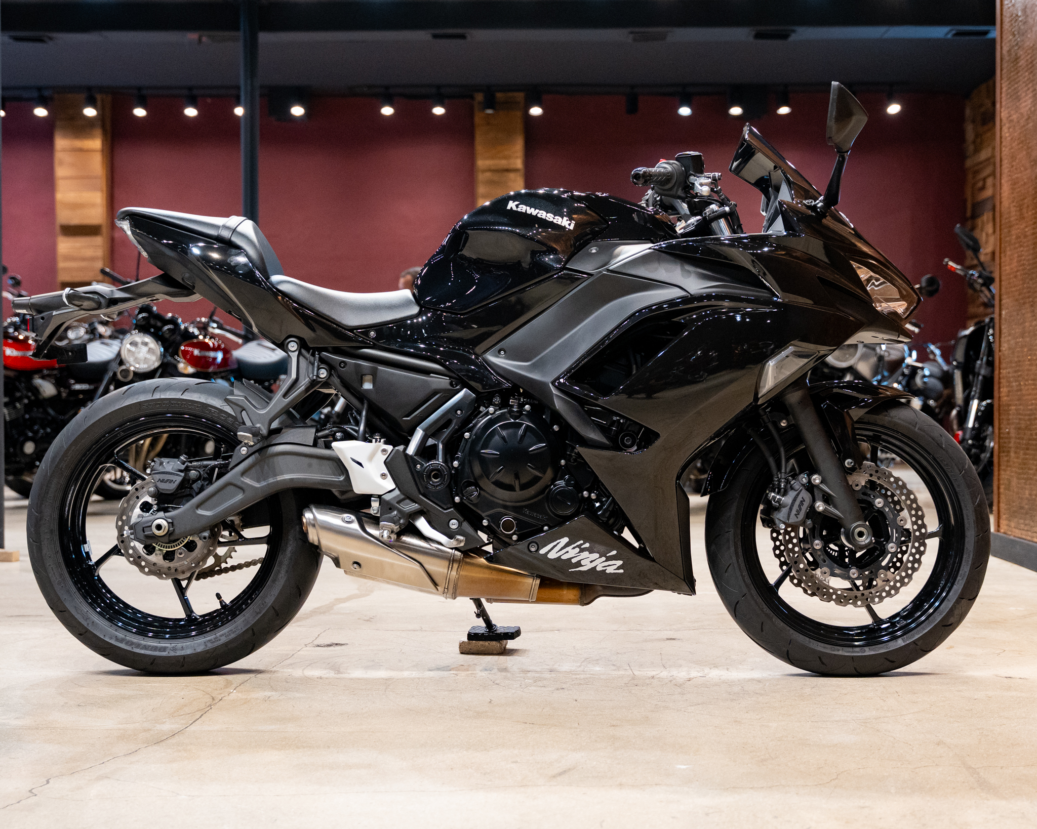 The ergonomic riding position, lightweight trellis frame, and advanced electronics make it approachable for newer riders while still exciting for experienced ones. The bike’s aerodynamic fairing, LED lighting, and sharp lines embody the unmistakable Ninja family DNA.